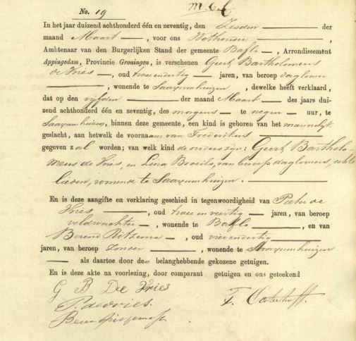 Birth Fred de Vries, 1871