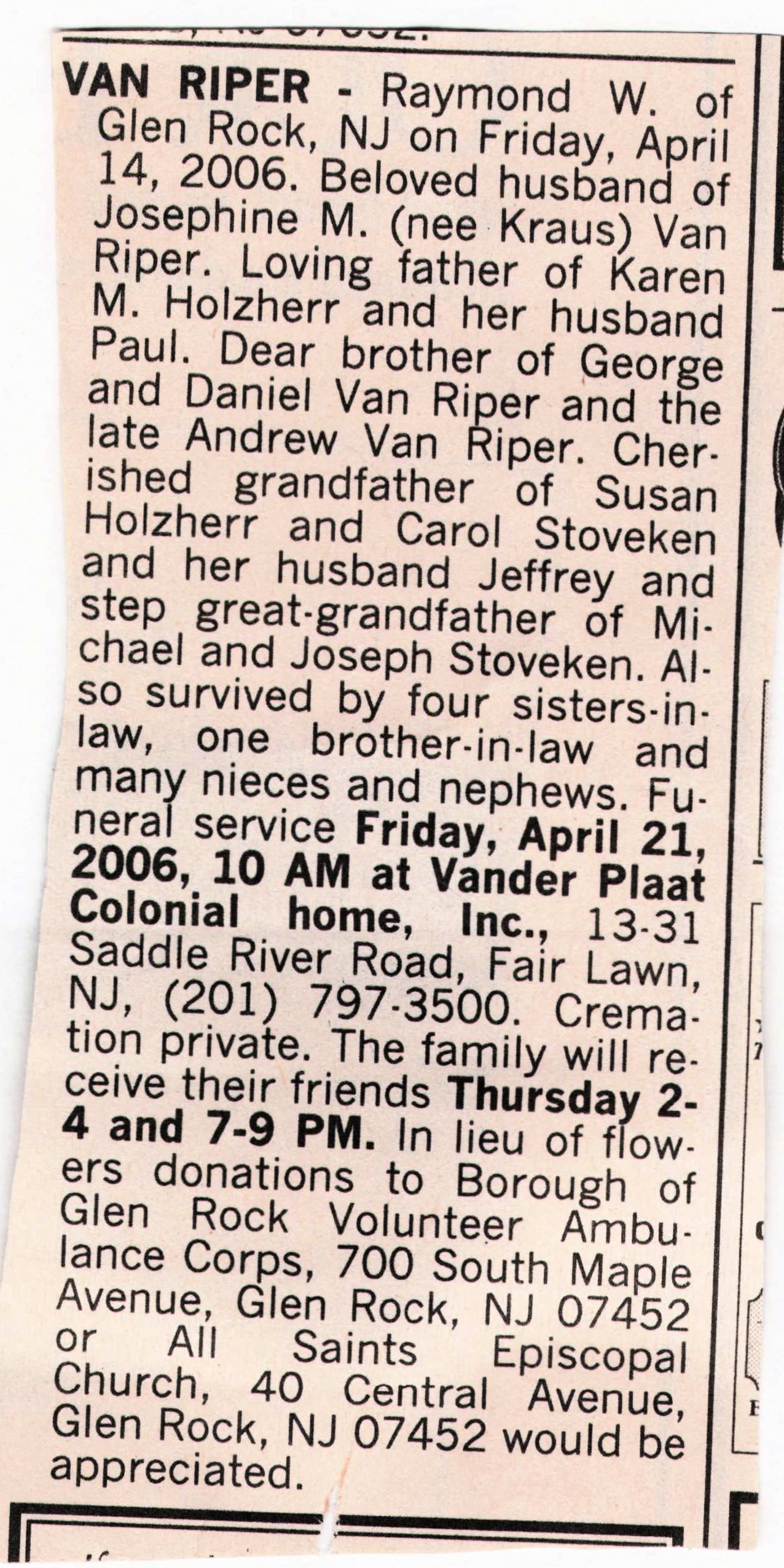 Raymond W Van Riper