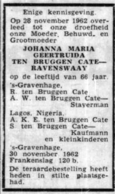 Descendants of Harmen ten Bruggencate (c. 1550)