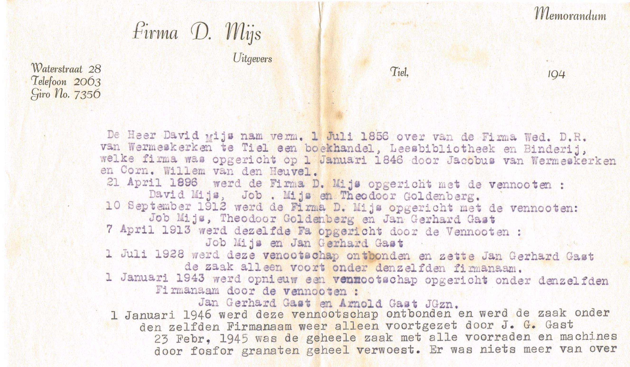 History of the Fa. Mijs, as described by Jan Gerhard Gast