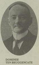 Ds. Johannes ten Bruggenkate was bt 1896 - 1933 a Dutch Reformed minister3He worked in Jun 1896 in Barchem, afterwards 1899-1903 in Westwoud, 1903-1907 in Ruurlo, 1907-1928 in Leeuwarden, and 1920-1933 in Ossendrecht.3 He was Knight in the Order of Oranje Nassau.5 He and Ds. Jan ten Bruggenkate were contributors to the weekly "De Blijde Boodschap" (Christian weekly for Dordrecht and surroundings), published between 1904 and 19188. Ds. Johannes ten Bruggenkate was the brother of Ds. Jan ten Bruggenkate.9