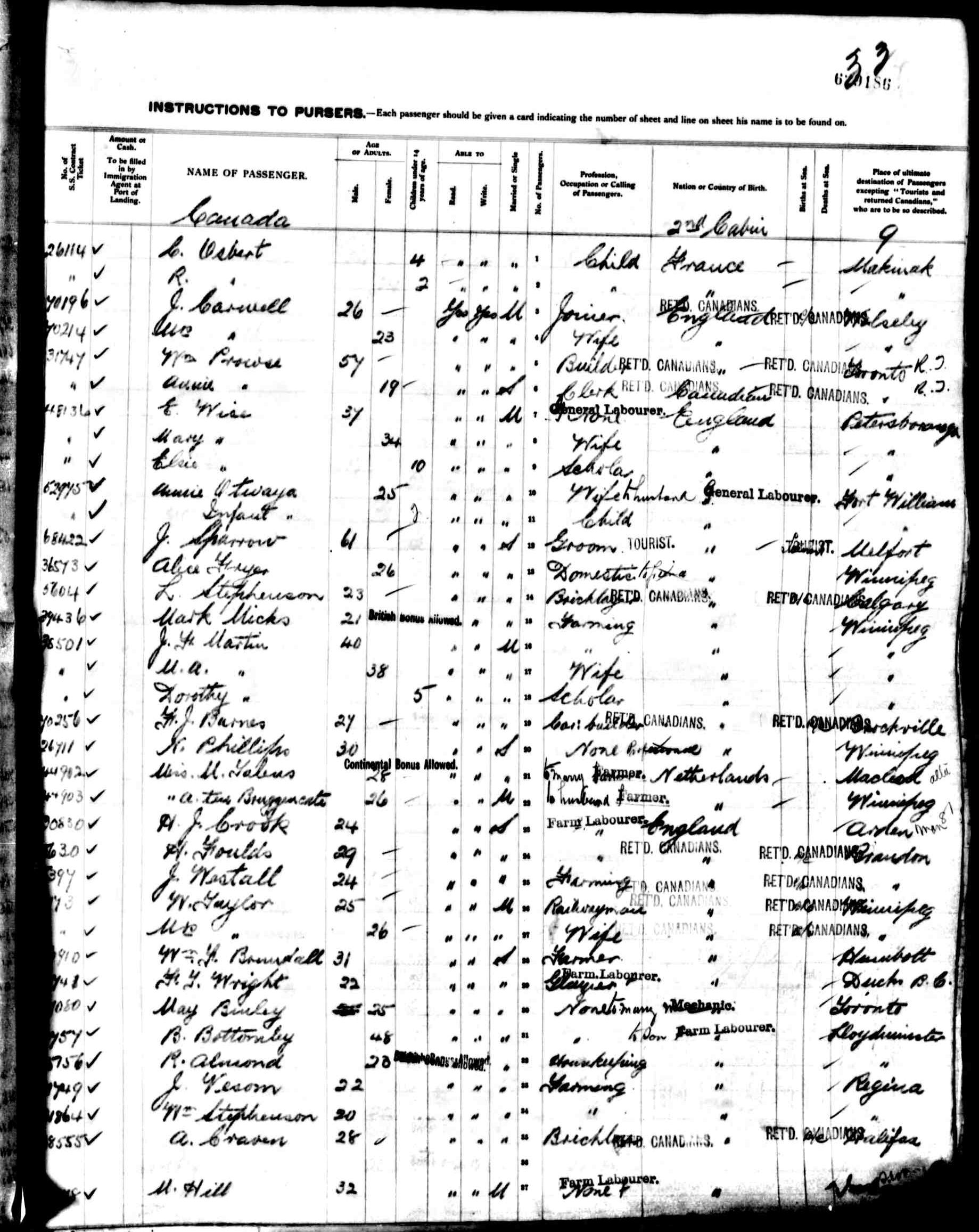 Page from Passenger Manifest of the Victorian